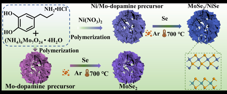 图1 MoSe2/NiSe异质结以及MoSe2的制备流程图