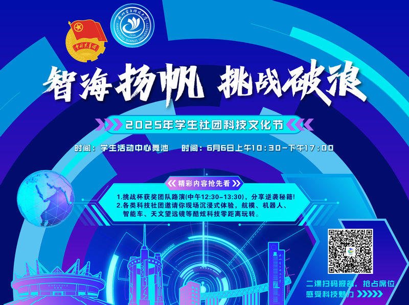 报名方式:此次活动在“二课系统”进行报名,打开公众号“青春杭电”,点击菜单栏“第二课堂”,进入“正在报名”界面即可报名。